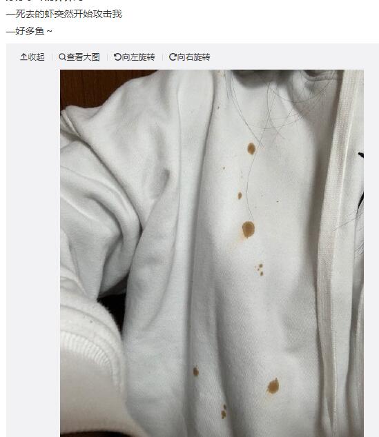 吃虾扎到嘴了,可以吐槽“死去的虾突然开始攻击我”