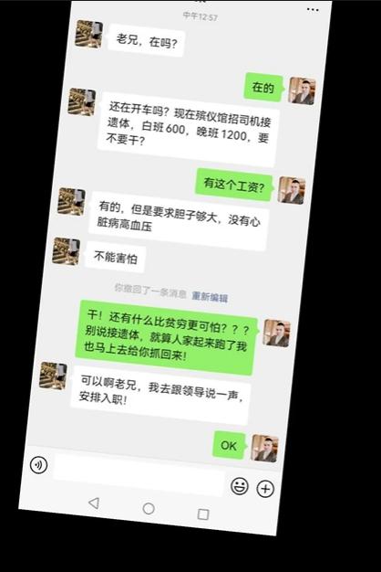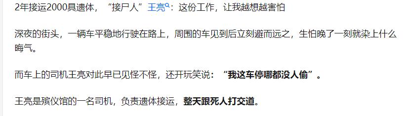网上也因此流传起了很多段子,什么工厂干的不好,挣不到钱就去搬尸去,月工资高待遇好,还不用跟人打交道,钱到位尸体跑了都能帮背回来。