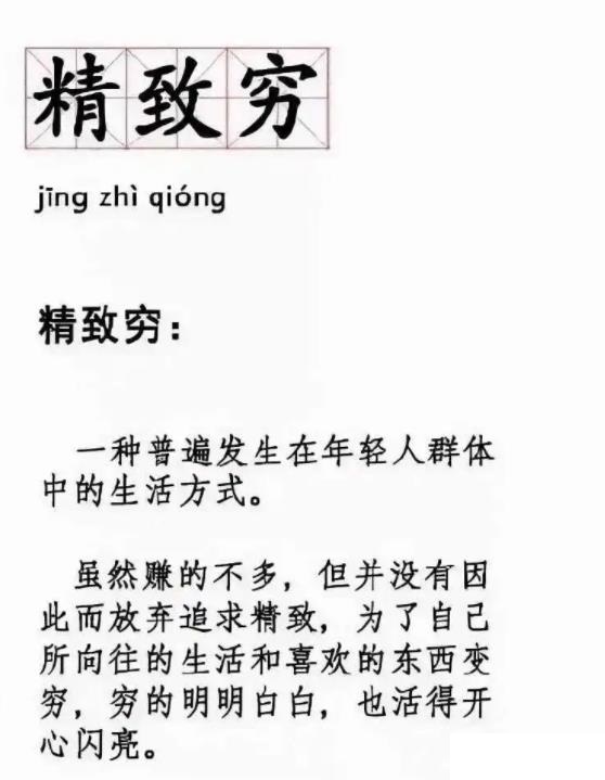 中国的语言博大精深,同样的字换了个位置,意思就不一样!精致穷和穷精致实际意思是不一样的: