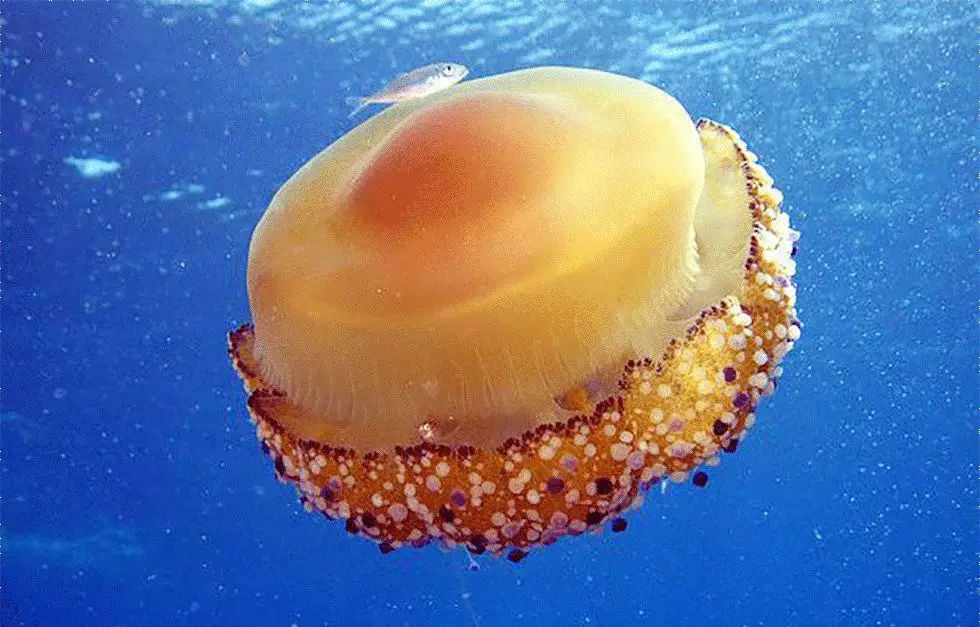 在海洋生物中,小鱼和水母也有着如此独特的关系。许多小鱼侵入水母伞,利用水母有毒的触须躲避天敌。当然,小鱼也有一些特定的。水母也会捕食小鱼,所以当水母靠近蛋黄水母时,小鱼不会被蛋黄水母吸引,但水母游得慢而且有毒,可以当一把保护伞。有些种类的水母非常小,有些非常大,触手长达20-30米。伞身的长度一般为35厘米,最长可达50厘米。伞呈圆盘状。蛋黄水母看起来像蛋黄,具有完整的生物结构。这是因为身体的性腺和其他胃囊都有颜色和光泽,所以身体呈金黄色或橙色,中间有一个凸起。它是透明的,类似于蛋黄的形状。