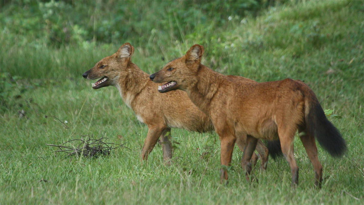 我们常说豺狼,有时人们称它为亚洲野狗,人们认为它也是狼的一种。其实严格来说,这两种动物根本不是同一种动物,就像猫科动物中的豹子和猎豹一样。狼属于犬科中的犬属、“灰狼种”,豺则是“薮狗亚科”,“豺属”“豺种”豺外形与大型豺相似,有浅黄褐色至亮红褐色,尾尖为黑色。分布于中国南部、不丹、印度、苏门答腊和爪哇,在中国北部可能有间歇性分布。它们在俄罗斯和蒙古东南部分布不明显,栖息在森林、森林-草原山地灌丛中,避开广阔的栖息地、农区和牧区。