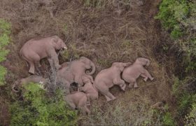 大象的数量越来越少了,现在大家看大象都只能动物园看了,咱们还是多爱护动物的好!曾经有一个无人机拍到大象在地上躺…